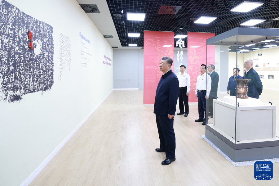 9月10日,中共中央总书记、国家主席、中央军委主席习近平在前往甘肃考察途中,来到陕西省宝鸡市参观宝鸡青铜器博物院。新华社记者 鞠鹏 摄